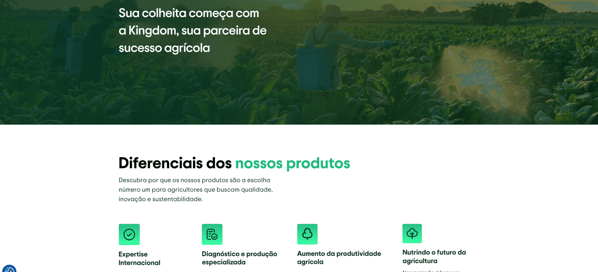 Um dos principais desafios da Kingdom: atender às necessidades de dois públicos distintos, agricultores e entusiastas de jardinagem amadora. Para isso, optamos por uma abordagem estratégica para fornecer informações relevantes e úteis para cada segmento, garantindo que ambos se sintam atendidos e engajados pelo site.