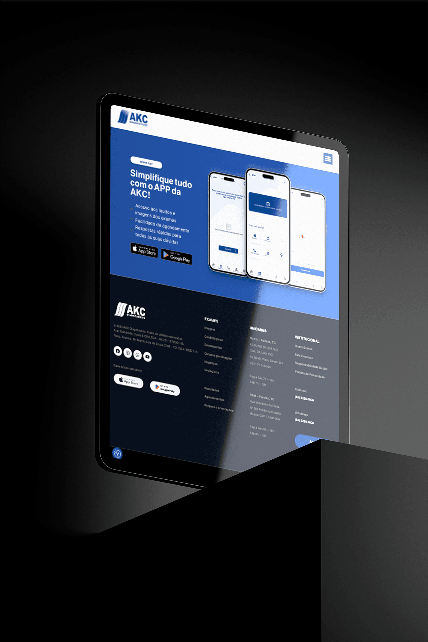 Necessidade de tornar as informações mais acessíveis e visuais, facilitando a busca por informações importantes para clientes de uma clínica de imagens. Desafio: site visual e funcional para um público de todas as idades.